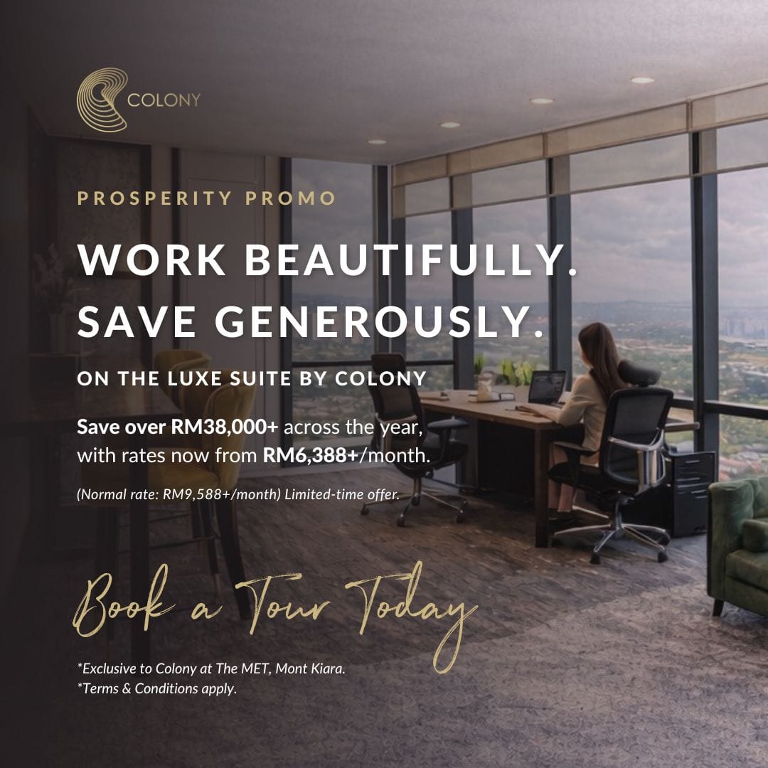 Save over RM38,000 annually with promotional rates from RM6,388+/month. (Normal price: RM9,588+/month)